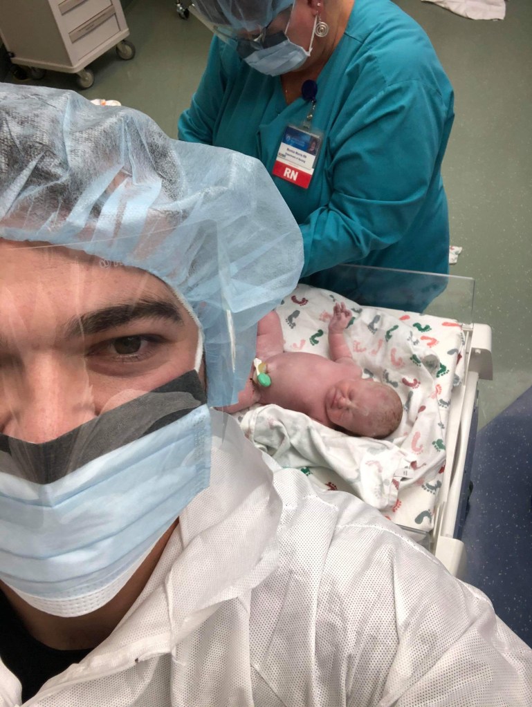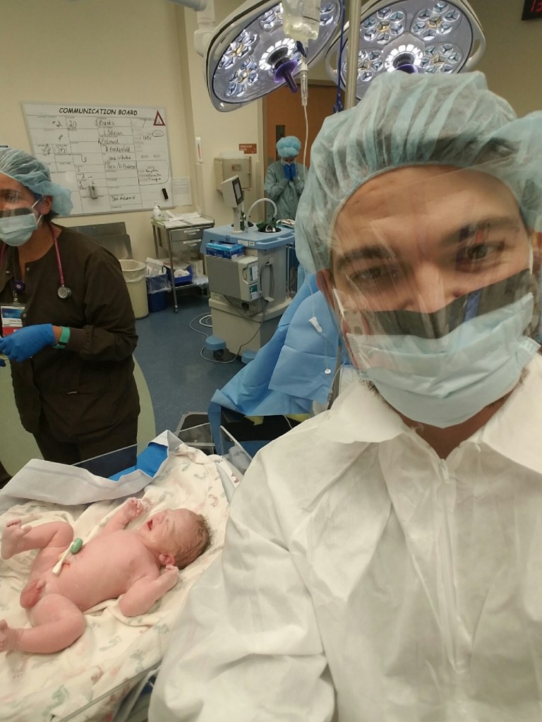 By 8 am I was having some stronger contractions so I told my nurses that I wanted an epidural. The reason I asked so early was because I was terrified that the anesthesiologist would take forever and it would be too late. By 9am he came in and I was given an epidural. This epidural definitely worked because I could not move from the waist down. I no longer felt any of the contractions but I was still having them pretty consistently. At 12:30 pm my OB checked me and I was still at 4 centimeters and been for the last 4 hours. My husband was handed a head to toe sterile suit and we were told that I needed a cesarean. Being new parents, we were terrified and went with it. We were told to get everything packed up because we would not be returning to that room after surgery.