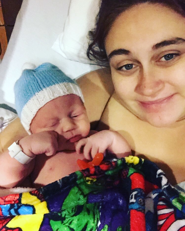 The surgery itself went much like my first. I felt nothing but pressure and nausea and then my son was born at 1:31pm. Daxton was 7lbs 9oz. My husband held him by my head while they closed me up because I was spitting up a bit. They suctioned my mouth out to keep me from choking and once I was able to turn my body a bit it was much better. We were transferred to a little recovery room where they cleaned me up, changed my gown, and put pads under me, all with baby on my chest. He latched on for the first time in that room and I knew right there that I could do this. I could be successful in nursing my baby. Little did I know what I was going to have to go through first.